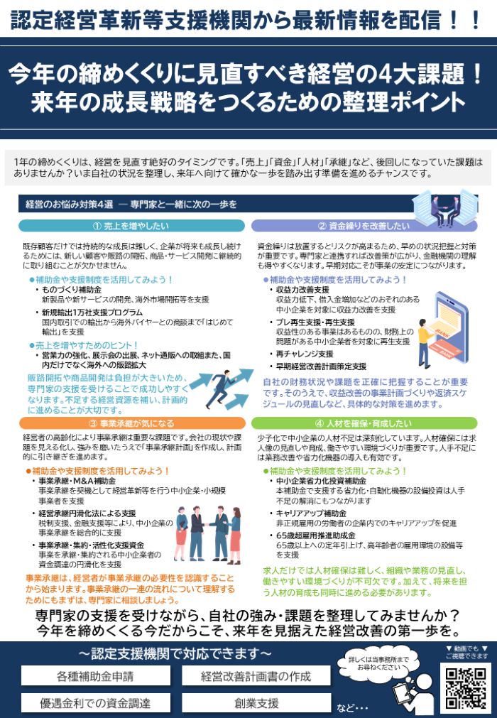 今月の経営革新等支援機関推進協議会からのお知らせ
