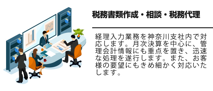 | 税務書類の作成 | 各種税目(法人税、消費税、地方税、相続税、所得税)に関する税務書類を作成します。 |